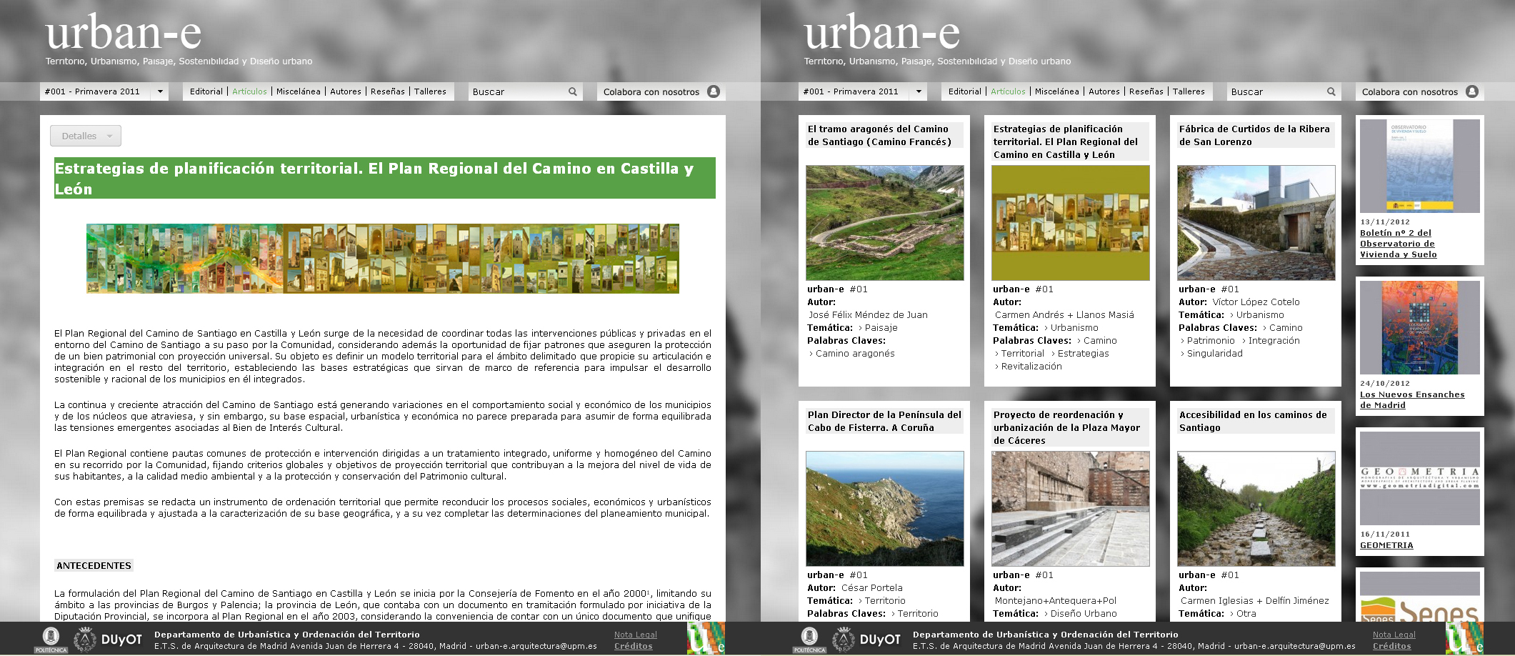 Estrategias de planificación territorial: el Plan Regional del Camino de Santiago en Castilla y León. Julio 2011. Revista de Urbanismo URBAN-E, Departamento de Urbanística y Ordenación del Territorio de la Escuela Técnica Superior de Arquitectura de la Universidad Politécnica de Madrid. ISSN: 2174-646X.