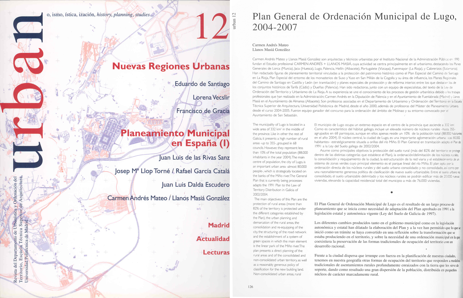 Plan General de Ordenación Municipal de Lugo, 2004-2007. Revista URBAN nº 12, 2007. Departamento de urbanística y Ordenación del Territorio, Escuela Técnica Superior de Arquitectura, Universidad Politécnica de Madrid. ISSN:1138-0810.