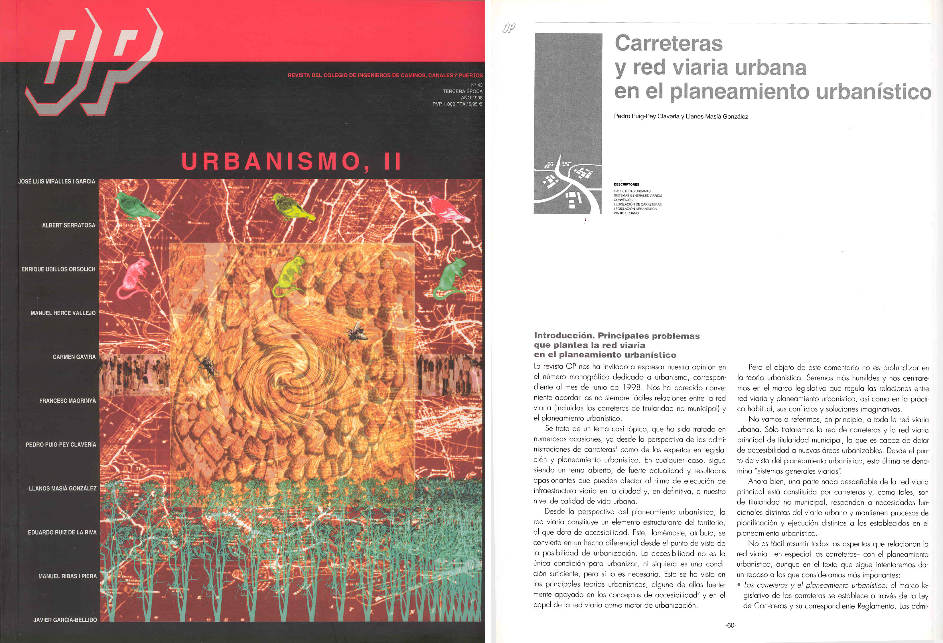 Carreteras y red viaria urbana en el planeamiento urbanístico, en colaboración con Pedro Puig-Pey Clavería. Revista del Colegio de Ingenieros de Caminos, Canales y Puertos, Obra Pública nº 43. 1998. ISSN 0213-4195.